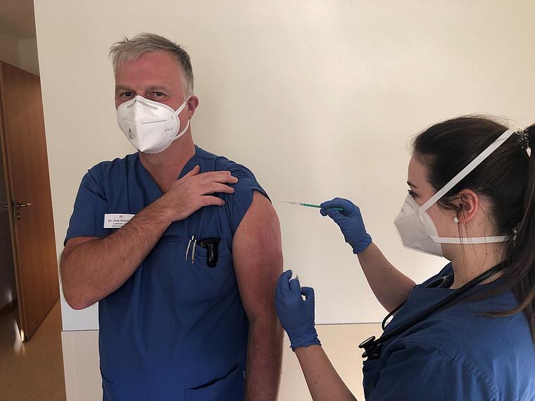 Dr. Jörg Schreiber, leitender Arzt Intensivmedizin, eröffnete die zweite Impfrunde mit dem Corona-Impfstoff im BKT. "Generell ist die Impfbereitschaft in unserer Klinik hoch", freut sich Dr. Schreiber.
